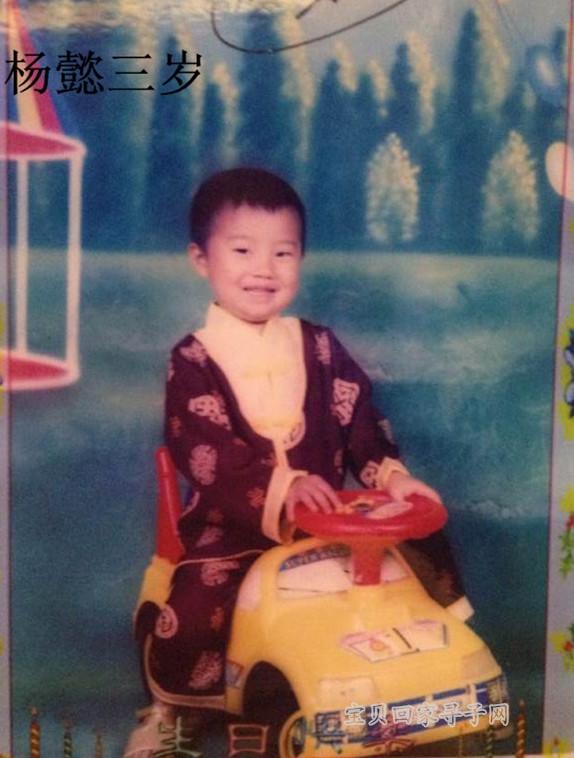 失踪经过:2005年07月15日(农历)上午,外婆和舅舅带杨懿去县城卖鱼苗,到了市场舅舅说想买摩托车就离开了。杨懿的姨婆买菜看见他,问他要不要去姨婆家,他想去,外婆说要等姨婆买好菜再走,就给他削了个梨,抱到三尺高的台子上让他坐着等,孩子梨没吃完就跑到外婆面前说:有一个人问他叫什么名字?和谁来的?爸爸妈妈在哪里?边说边指,外婆看了一眼,那个人很高,不胖,穿一件条纹体恤,只看到背影。接着就有很多人来问鱼苗的价格,外婆忙的卖鱼苗,快到中午12点的时候人散了,才想起孩子,已经不见,一开始以为和周围熟悉的人玩去了,后来发现失踪,赶紧报警,派出所的摩托车拉得外婆到处转也没找到。当时涨大水,河对面就是云南绥江县的石龙,嫌疑人究竟从哪条路走的也不知道。