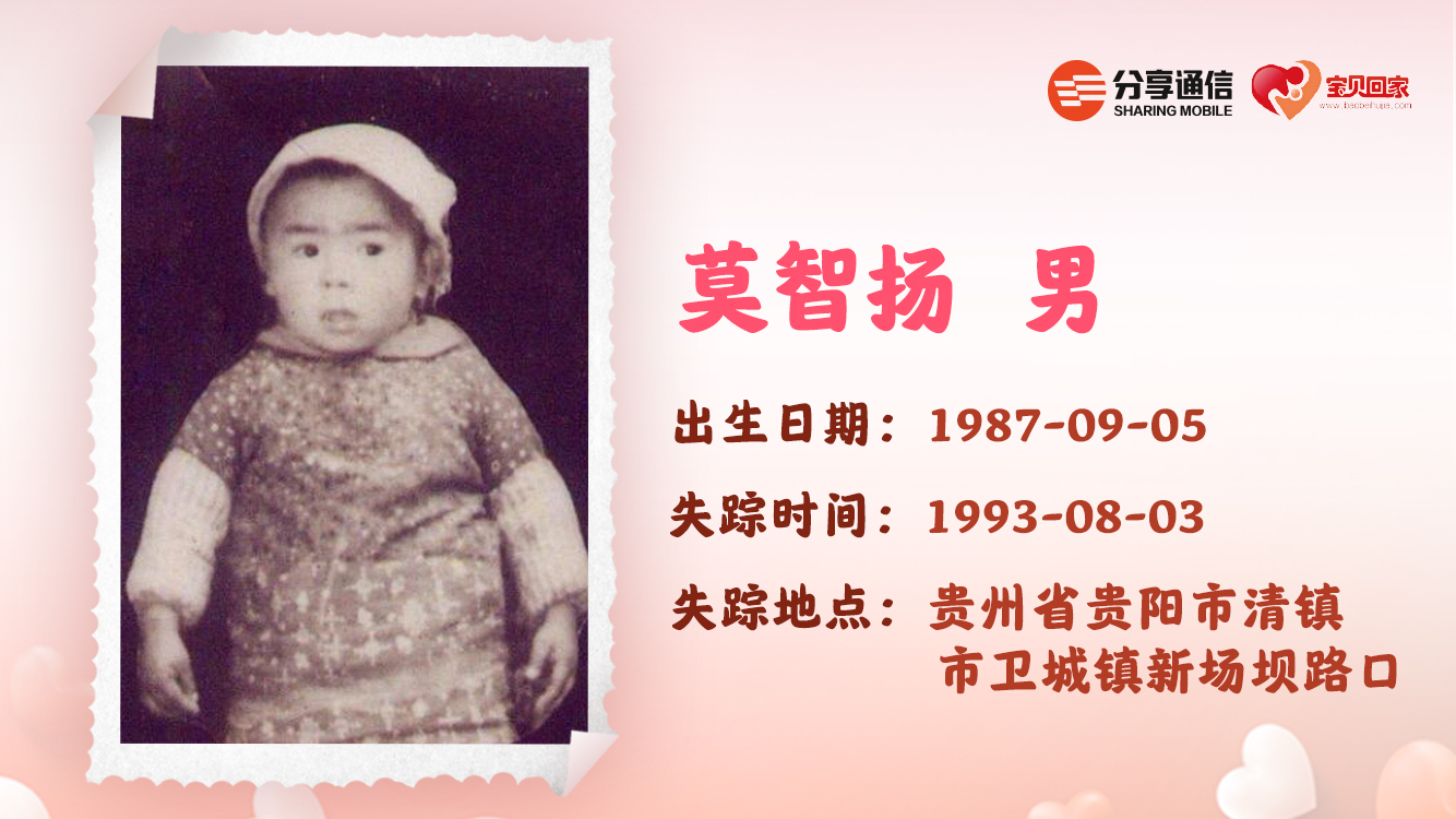 失踪地点:贵州省贵阳市清镇市卫城镇新场坝路口